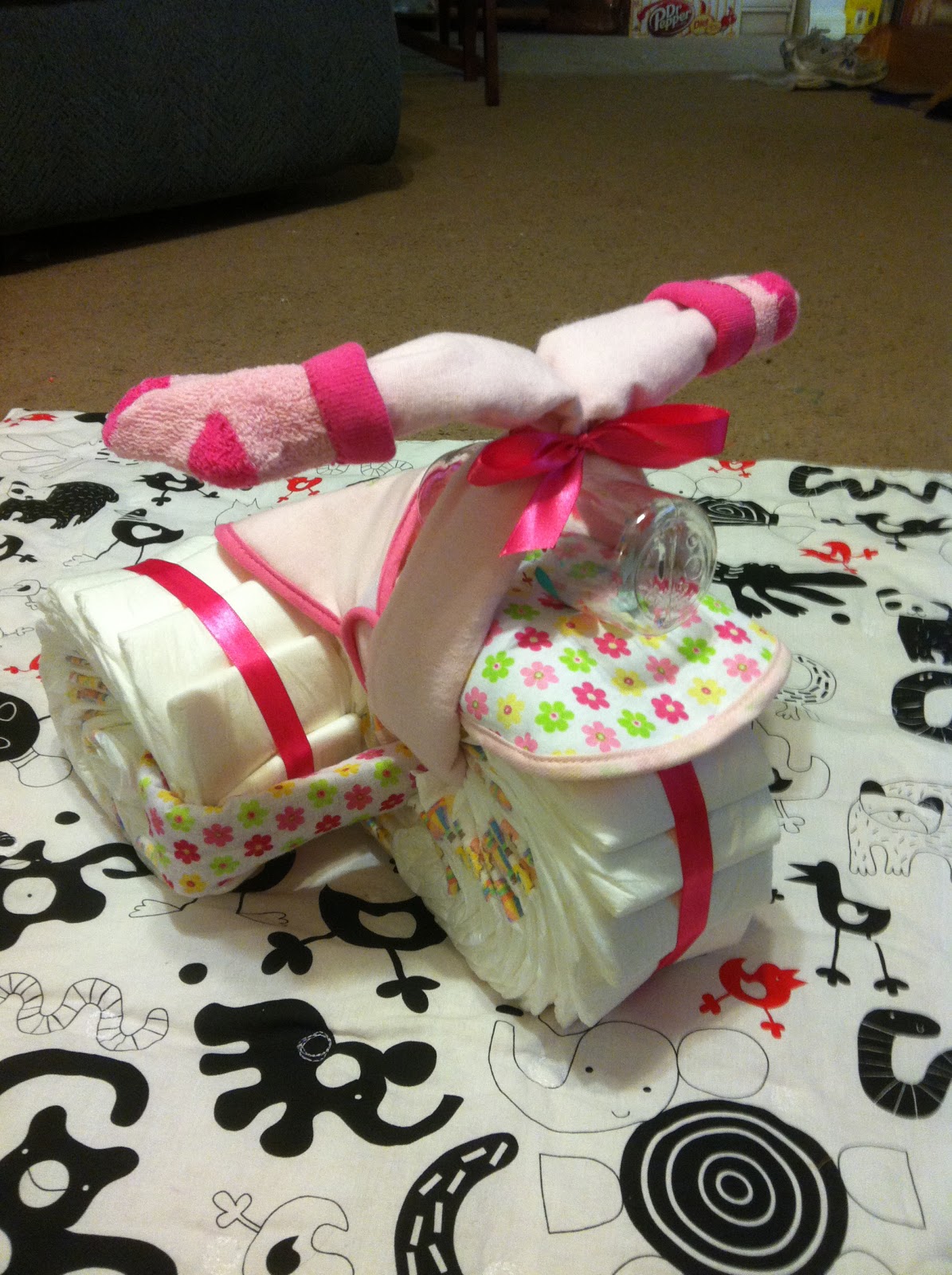 Anyway, I was invited to two showers this month, a girl shower and then a boy shower. And I saw this super cute diaper tricycle on pinterest and knew I had to make it: